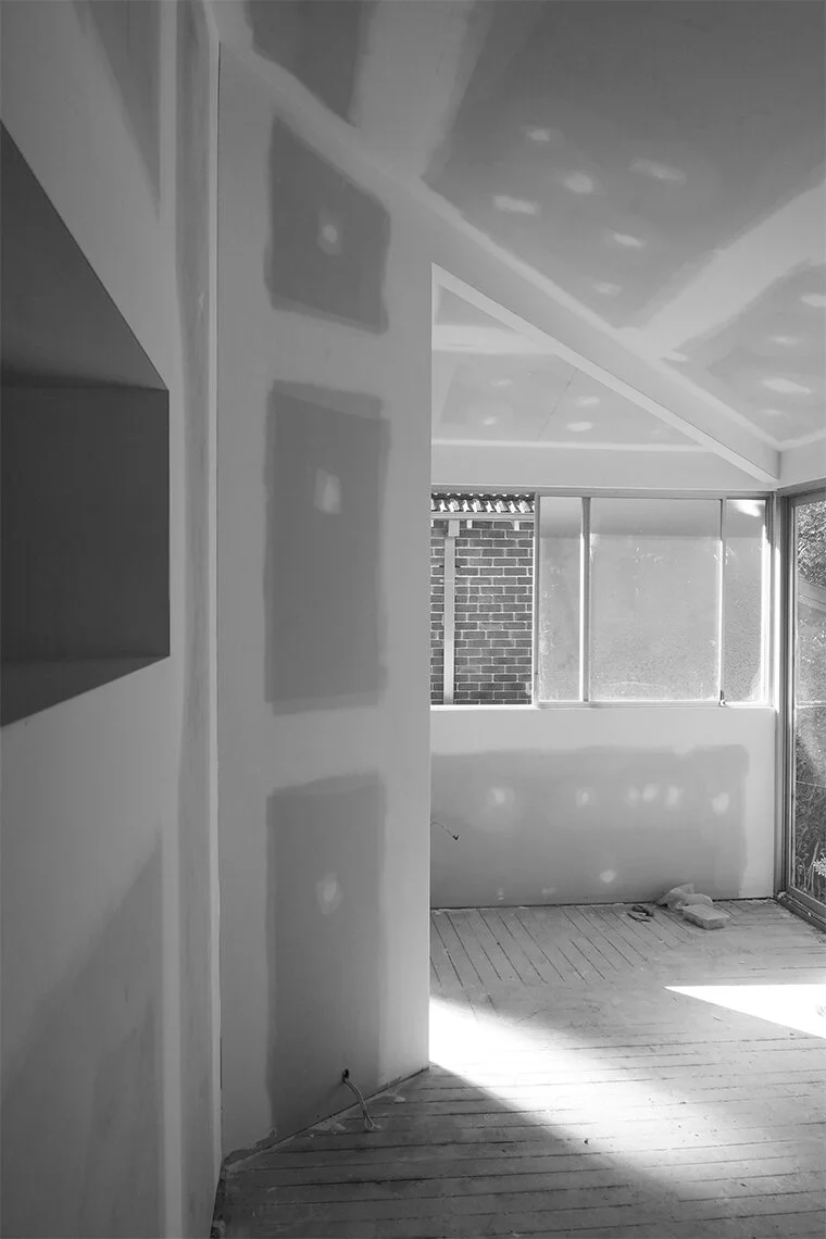 To unify the design throughout the building the existing timber floorboards have been cut, stained and sealed. A smokey-brown tone was selected to give the young family a calm and attractive domestic space.