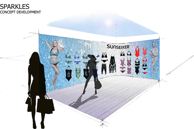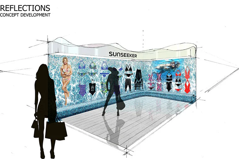 Seeking to capture the delicious sensations of the Australian culture of swimming, this store design for women’s swimwear explored the phenomena of effulgence, submersion and reflections.